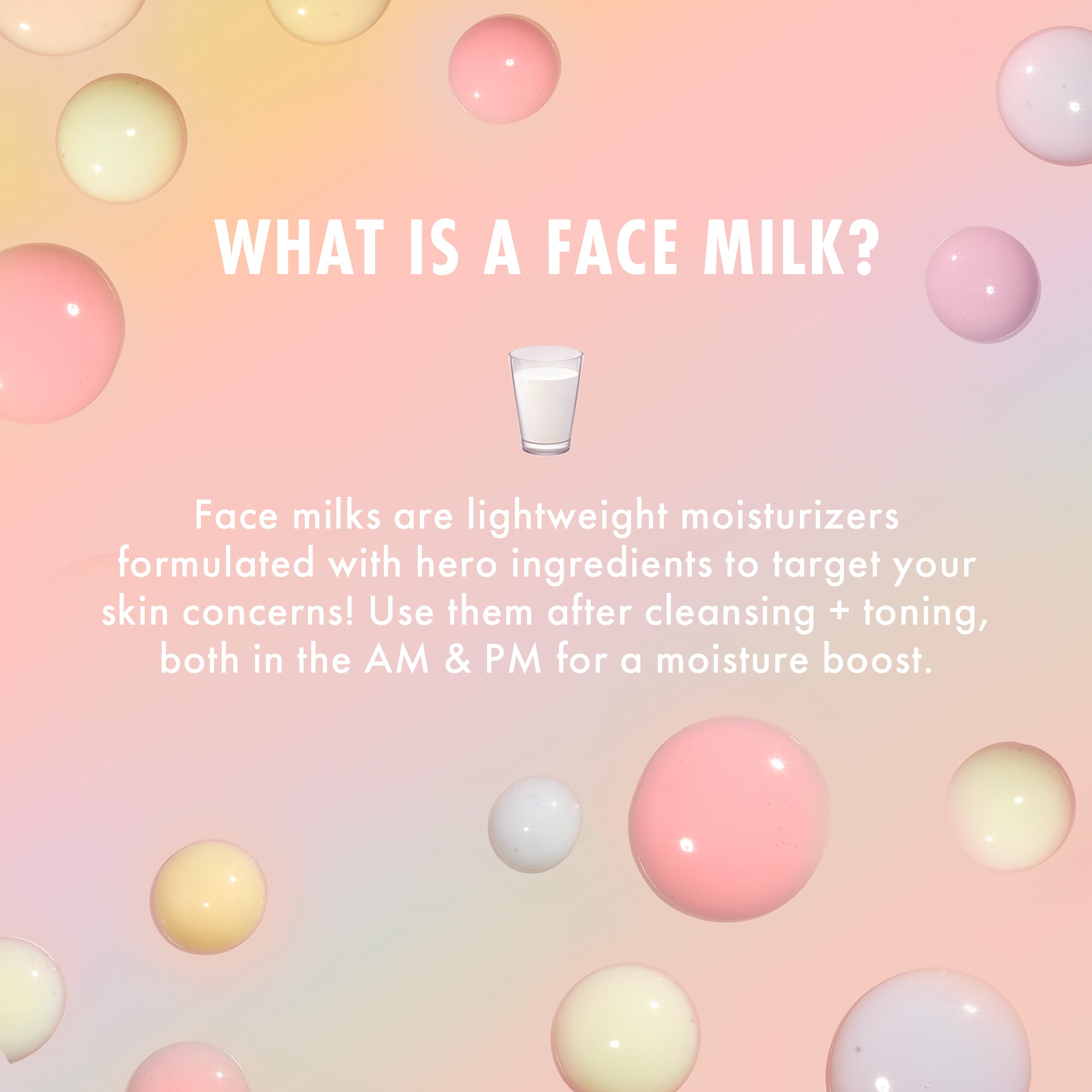 MORE DEETS – Lightweight and fast-absorbing. use a dose of Face Milk daily to get the perks of a face lotion without the greasy after feel.